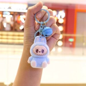 Labubu Mini Keychain (6.0cm x 4.2cm) – Flocked Cute Collectible Toy with Optional Bell